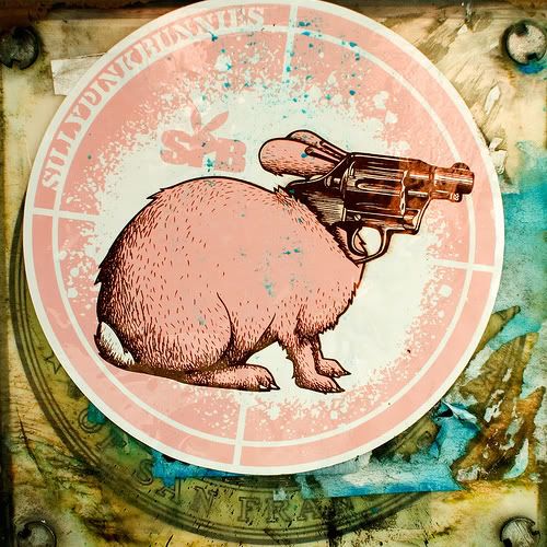 The Sgt. explains that this is the bunny we're looking for, that he's dangerous, and before he spits in his coffee cup, calls us ladies, and wishes us a good day, he's kind enough to give us a guess of where to find him.